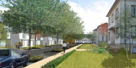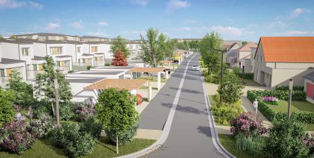 Entre location, accession à la propriété, vente de parcelles libres et terrains à bâtir, le projet a bénéficié d’une réflexion paysagère poussée, avec d’importantes plantations pour un environnement fortement arboré et des jardins partagés qui ont séduit les équipes du Grand Reims lors de la phase de concours remportée par le bailleur. Il faut dire que le site jouxte un cimetière et que l’aménagement proposé permet de conserver la solennité du lieu tout en offrant un cadre de vie agréable aux futurs habitants.