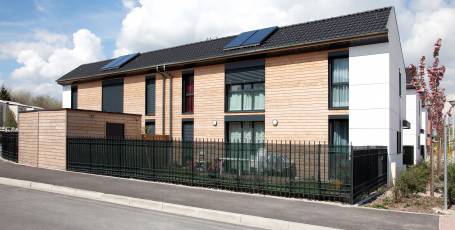 Social, économique, écologique : les 13 maisons BBC de Saint-Brice-Courcelles (ZAC des Bords de Vesle), réparties sur 6 bâtiments à ossature bois, respectent scrupuleusement les 3 critères du développement durable. Imaginées par l’architecte Emmanuel Coste, elles divisent quasiment par 5 la consommation énergétique d’une maison traditionnelle, diminuant ainsi considérablement la production de gaz à effet de serre. Orientées plein Sud et équipées de panneaux solaires, elles peuvent s’autoalimenter voire même produire de l’énergie.