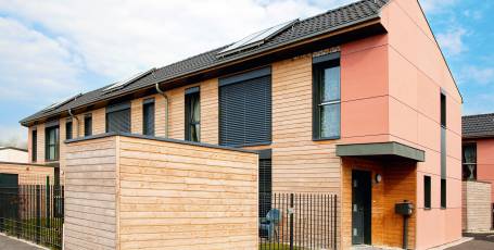 Parmi les premières réalisations en bois de Plurial Novilia, se trouvent les sept maisons à ossature bois de Warmeriville, un projet mené en partenariat avec l’architecte Jean-Philippe Thomas.