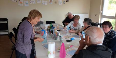A raison de 2 à 3 fois par semaine, les habitants de la Tour à Aÿ ont rendez-vous dans le hall d’entrée pour venir passer quelques heures ensemble dans une petite salle de couleur bleue. Ce rituel est mis en place en novembre 2013 et réunit une quinzaine de personnes, âgées de 52 à 93 ans, pour un moment d’échange et de convivialité autour d’ateliers de fabrication – dont certains se font en présence de salariés de Plurial Novilia.
