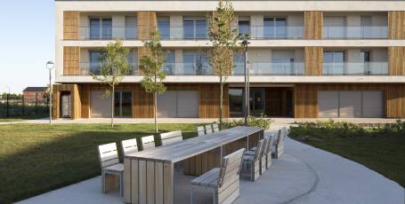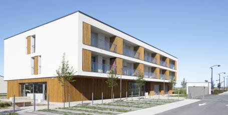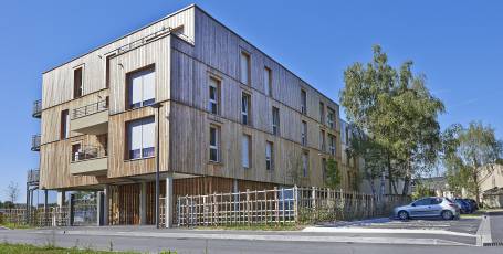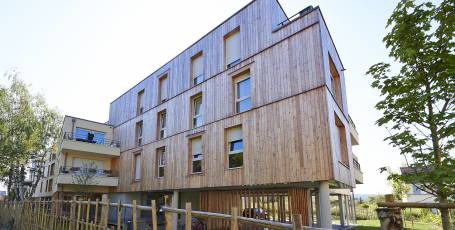 Les 3 bâtiments bioclimatiques sur pilotis, dont un bâtiment sénior composé de 14 logements (T2 et T3), s’inscrivent dans une démarche globale qui vise à repousser le champ des possibles en matière de conception et de construction écoresponsables, et à proposer une approche sociale intergénérationnelle au quartier.
