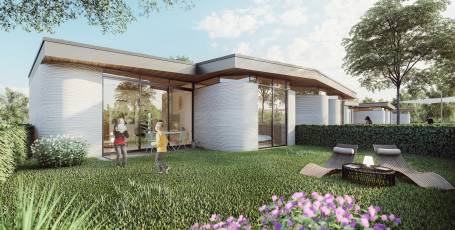 Pour ces cinq maisons de plain-pied allant du T3 au T5, Plurial Novilia a fait le pari de réaliser la majeure partie des éléments porteurs en impression 3D – faisant ainsi passer cette technologie, encore assez peu utilisée dans la construction, du stade expérimental actuel à un stade pleinement opérationnel et reproductible.